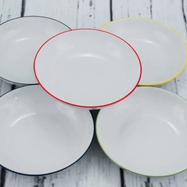 Porcelanowy talerz deserowy z kolekcji Base Blue marki Bogucice, zdobiona delikatnym niebieskim paskiem na obrzeżu. Kolekcja Base Blue od marki Bogucice idealnie odpowiada na potrzeby klientów, którzy zaopatrzeni byli w słynną niebieską linię z Zakładów Porcelany Stołowej Karolina.