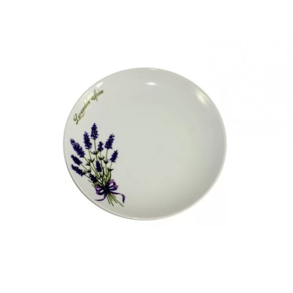 Talerz płytki 20,5cm (przekąskowy) z motywem lawendy marki Lubiana. Wykonany z białej porcelany, dekorowany motywem lawendy - dekoracja nr 5979.