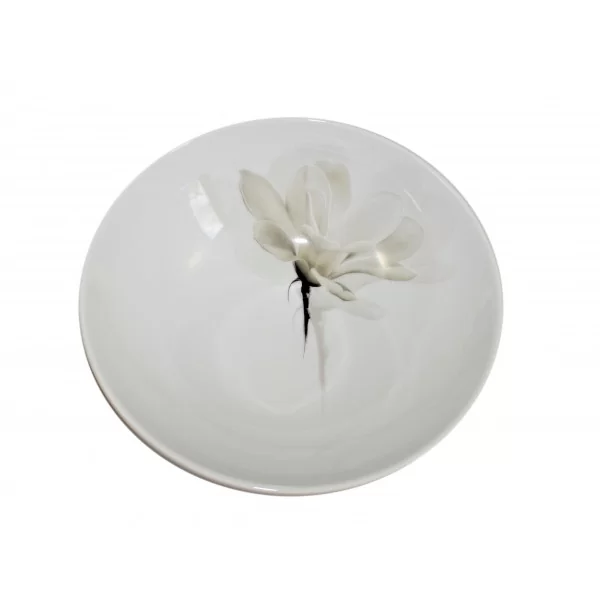 Talerz głęboki z motywem magnolii. Porcelana biała. Producent Lubiana, dekoracja nr 6474.