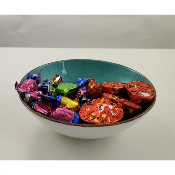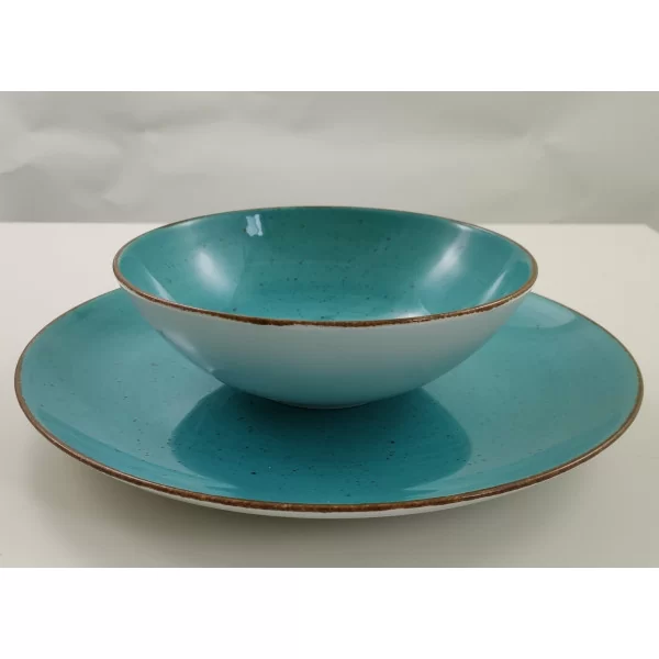 Okrągły talerz głęboki bez skrzydła o średnicy 18 cm, może być używany do podawania zup, makaronów.