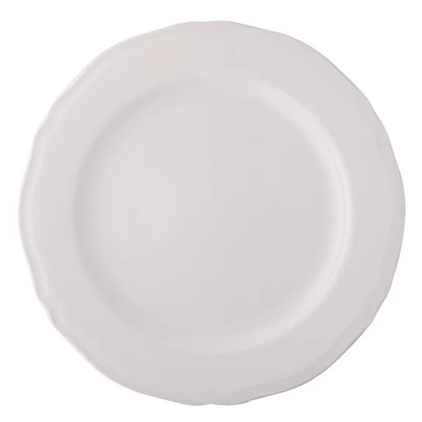 Talerz płytki, obiadowy o średnicy 26,5 cm w stylu retro, wykonany z porcelany w ciepłym kremowym kolorze. Posiada subtelne reliefy podkreślające jego kształt. Idealny talerz do serwowania drugiego dania. Doskonale sprawdzi się przede wszystkim w gastronomii, chodź z powodzeniem może pełnić rolę zastawy domowej.