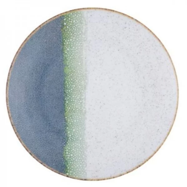 Ich delikatna dekoracja w trzech różnych kolorach - zielonym, niebieskim i beżowym, nadaje im niepowtarzalny urok, dodając świeżości, spokoju i elegancji każdemu stołowi. Dodatkowo, brązowa obwódka na rancie talerzy dodaje subtelny akcent, podkreślając ich wyrafinowany charakter.