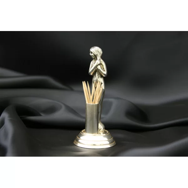 Posrebrzany stojak na wykałaczki z figurką Syreny.