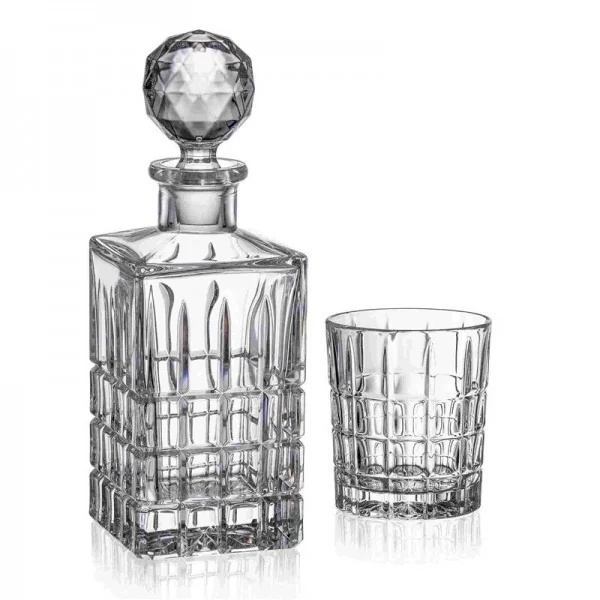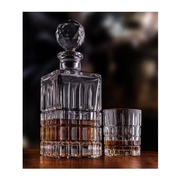 Elegancki komplet składający się z karafki z korkiem oraz 6 szklanek. W karafce podasz w elegancki sposób whisky. Szkło jest idealnie przejrzyste i pięknie podkreśla barwę podanego trunku, dzięki temu zestaw sprawdzi się zarówno podczas spotkania z przyjaciółmi jak również podczas spotkania biznesowego.