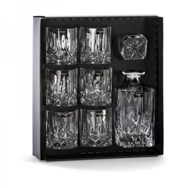 Zestaw do whisky dla każdego prawdziwego miłośnika tego złotego trunku. Wykonany jest w całości z przejrzystego, trwałego szkła kryształowego. Zestaw będzie pięknie prezentował się nie tylko na stole podczas przyjęcia ale również na co dzień w szklanej witrynie.