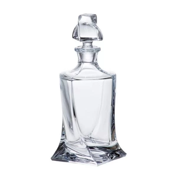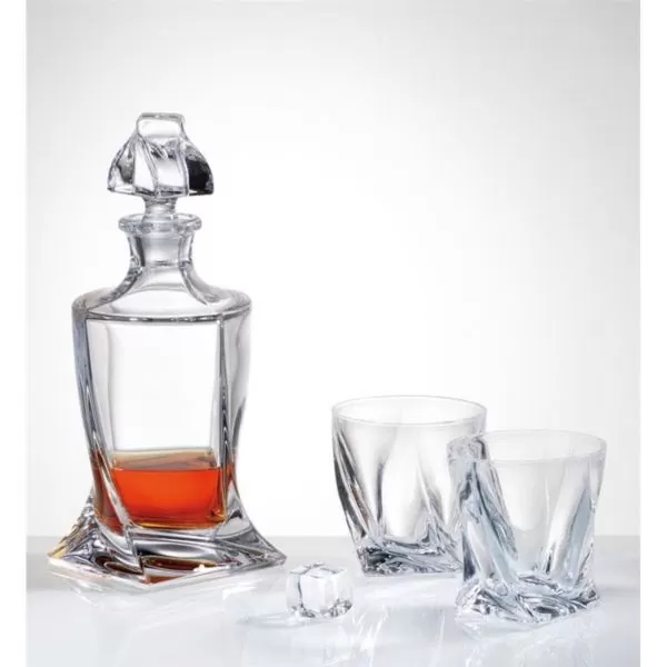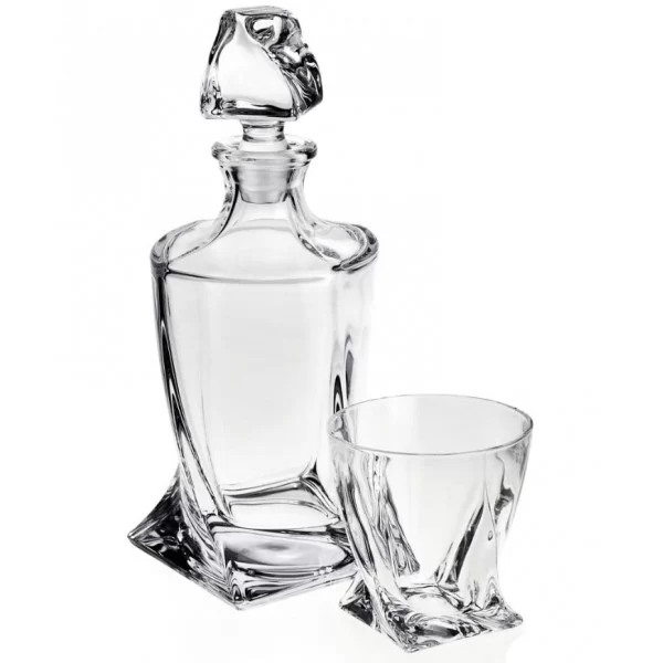 Ultranowoczesny komplet z kryształu, karafka i 6 szklanek do whisky linia QUADRO. Producentem wyrobu jest Bohemia z Czech.